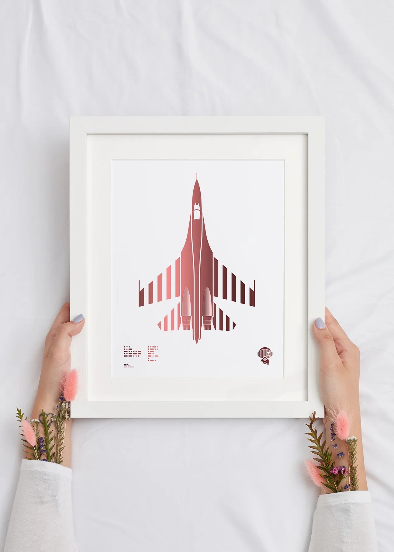 Su-27 Flanker Rose Gold Foil Aircraft Print