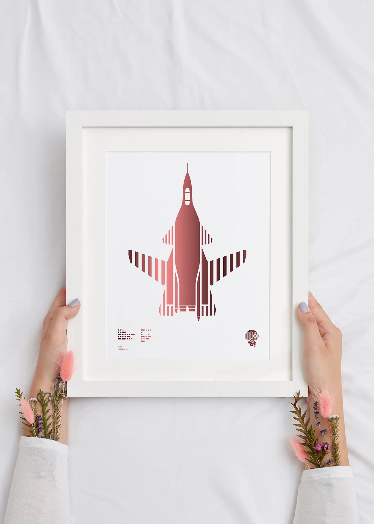 This digital foil print captures the unique and aggressive form of the Su-47 Berkut, highlighting its swept-forward wings and sleek silhouette in stunning rose gold foil on white digital paper. Printed in A4 size (210 x 297 mm), this artwork is a perfect collector’s piece for aviation enthusiasts and military aircraft fans, celebrating one of the most innovative jets in aviation history.
